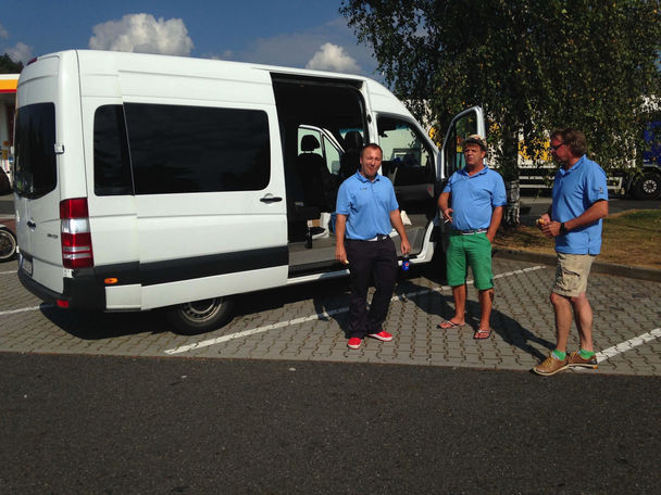 Zum diesjährigen Finale in der Nähe von Pilsen haben wir unserem Bülent die Organisation unseres Transpoartmittels überlassen müssen. Unser eigentlicher Fuhrparkleiter Heinz Kiesl jr. wurde sich mit seiner Ansprechpartnerin, Frau Rieger, bei Mercedes Benz leider nicht handelseinig. So nahm das Unheil seinen Lauf. Nach diversen Angeboten hat sich unser Sir Fifty Lange für einen Karren sondergleichen entschieden. Hier ein kleiner Auszug aus der Mängelliste: fehlende Navigationsanlage; beide Außenspiegel kaputt (einer mit Isolierband geklebt); defektes Radio mangels abgebrochener Antenne. Außerdem war der Innenraum dermaßen verdreckt, daß es uns tatsächlich einigermaßen schwer gefallen ist, in dieses Fahrzeug einzusteigen. Und trotzdem war unser Bülent diesmal ohne telefonischen Weckruf einigermaßen pünktlich beim HC-Besten, um ihn abzuholen. Danach ging es wie geplant weiter. Auch diesmal haben wir natürlich wieder vorbestellte, belegte Semmeln vom Allerfeinsten beim Metzger unseres Vertrauens in Lochhausen abgeholt. Die Fahrt zum ersten Golfplatz in Tschechien verlief dann fast ohne besondere Geschehnisse. Nur beim Grenzübergang hat unser Fahrer mit der Einordnung in die Reihe der Grenzkontrollen für Veterinärtransporte einen derberen faux pass begangen. An den staunenden Zöllnern ist er dann aber beinahe selbstverständlich nach einer kurzen Pause vorbeigefahren, daß dem einen oder anderen fast das Klemmbrett aus den Armen gefallen wäre. Kurzum: wir sind bei bestem Wetter und bei noch besserer Laune am Golfclub Alfredo angekommen. Die gute Laune war aber auch auf jeden Fall der umsichtigen Planung zur Aufnahme von Erfrischungsgetränken aller Art gedankt. Um 12:10 Uhr ist dann bereits der erste Flight auf dem dortigen Golfplatz auf die Runde gegangen. Nach einer schönen Runde bei wirklich super Wetter hat Sir Fifty mit 33 Punkten den Tagessieg erkämpft. Somit ging für den ersten Abend die Ausflugstrophy in seinen Besitz. Sensationszweiter wurde bei dieser ersten Wertungsrunde der wiedererstarkte Heinz Kiesl jr. mit 29 Nettopunkten. Die 27 Punkte vom Tiger waren auch noch ganz ordentlich, wenn man bedenkt, daß wir auf diesen Platz noch nie gespielt haben. Unser HC-Bester hat leider nur noch 26 Punkte erspielt. Die 21 Punkte vom Ernie bzw. die noch unterirdischeren 18 Punkte vom Birdiemaker müssen hier nicht näher erläutert werden. Eingeweihte Fachleute gehen davon aus, daß Ernies Focus bereits auf den nächsten Tag und somit auf die erfolgreiche Titelverteidigung gerichtet war. Anders ist dieses schlechte Ergebnis vom Titanstrophychamp nicht zu erklären. Aber immerhin hat es die Hoffnung vom Sir Fifty ein wenig geschürt, eventuell doch noch in diesen Kampf eingreifen zu können.