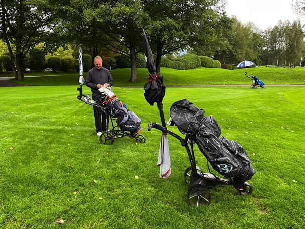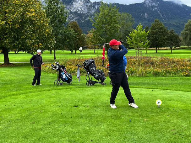 Geweckt vom nahegelegen Kirchturm frühstückten die Titans incl. Gast bereits um 7:30 Uhr, da um 10:10 der letzte Titansfight im Jahre 2022 startete. Die knisternde Spannung war mit Händen zu greifen, da noch fast alle die Ausflugstrophy ihr eigen nennen konnten und auch die Titanstrophy war noch nicht entschieden. Das Wetter spielte bis dato noch mit, obwohl ziemlich dunkle Wolken rund um den schönen Mondsee zogen. Die Temperatur ließ mit 8 Grad leider ein wenig zu wünschen übrig. Diesmal starteten die Titans Ping Kiesel und Birdiemaker mit Uwe im ersten Flight. Die restlichen Titans folgten ihnen 10 min später. Wiederum durfte unser EX-HC-Bester erst nach dem 12. Loch ein Cart benutzen. Aufgrund Sir Fiftys aufgezwängter App war jeder Titan wieder über jeden Score informiert. Einzig unser Ernie wollte nichts davon wissen und spulte sein Pensum ohne Druck ab. Scheinbar ließ sich unser Birdiemaker durch das Livescoring ein wenig unter Druck setzen und konnte sein normalerweise sicheres Spiel nicht wie gewohnt abrufen. Leider öffnete der Himmel ab Loch 15 seine Schleusen und es regnete fast junge Katzen. Der böige Wind, der mit dem Regen einsetzte, gab sein restliches dazu. Besonders unser schon von Fußaua begleitete Tiger konnte mit dem Regen gar nix anfangen und strich 3 Löcher in the Row. Nach 4 Stunden und 34 min war der letzte Titansfight 2022 Geschichte und Sir Fifty teilte sich mit 37 Punkten wiederum den Platz an der Sonne mit unserm Reiseleiter Ernie Weidner. Den letzten Stockerplatz erkämpfte Ping Kiesel mit 35 Punkten. Den 4. Platz erreichte unser EX-HC-Bester mit 31 Punkten. Aufgrund der Tatsache, dass er 24 Löcher per Pedes marschiert ist, ist es eine erstklassige Leistung. Unser Tiger konnte nicht an den ersten Tag anknöpfen und scorte nur 30 Punkte. Den 6. Platz belegte heute der Birdiemaker mit 27 Punkten, somit hat er seine Chance zum Titanstrophysieg leider verspielt. Uwe konnte heute auch nicht an seine gestrige Leistung anknüpfen, vielleicht klappts ja heute Abend beim Nürnbergerln. Somit war die Entscheidung zur Ausflugstrophy am GC Mondsee gefallen und wir gratulieren unserem Fahrer, App-Fetischist und Küken Sir Fifty ganz herzlich zum Sieg der heurigen Ausflugstrophy.