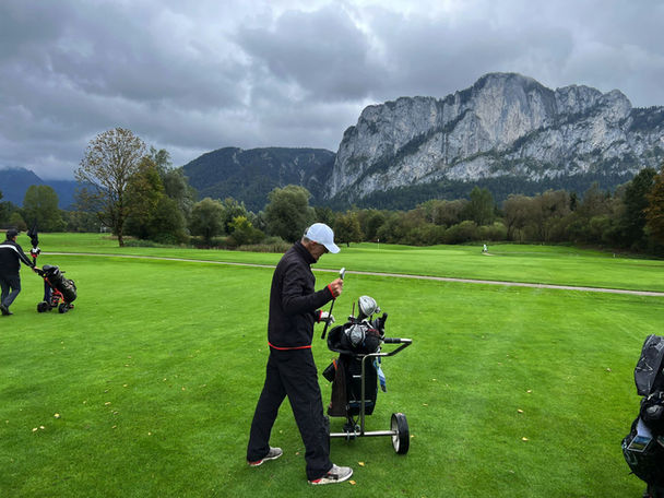 Da wir heuer zum ersten Mal in der Titansgeschichte einen Gast zum Finale mitnahmen, wurde uns sofort klar das unser Titansmobil, organisiert vom Fuhrparkleiter H. Kiesel, für 7 Personen incl. Bags und Gepäck zu klein wird. Nach gefühlt 100 Nachrichten im Titans-WhatsApp-Chat beschlossen wir, einen Hänger zu mieten, damit alle Titans incl. Gast im Titansmobil Platz haben und wir auch noch unsere Trolleys mitnehmen konnten. Unser langjähriger Fahrer Bülent Lange nahm sich der Aufgabe an und präsentierte einen ungebremsten Planwagen der Marke Westfalia. Der Abholplan wurde kurzerhand geändert, sodass Teile der Titans vom Bülent abgeholt wurden und der Rest von unserem Reiseleiter Ernie Weidner eingesammelt wurden. Treffpunkt war pünktlich um 7:32 Uhr beim Heinzi, der die isotonischen Getränke bereits 3 Tage vorher kühlgestellt hatte. Nach Beladen des Titansmobils incl. Hänger machten wir uns um 7:51 Uhr auf nach Eugendorf, da wir wieder im gemütlichen Holznerwirt residierten. Leider konnten wir aufgrund unseres Hängers die 300 PS unserer Mercedes V-Klasse nicht ganz ausspielen und zuckelten dank Bülent´s Limiter mit 91 km/h die A8 Richtung Salzburg. Die Stimmung an Bord war nach einigen Getränken und Wurstsemmeln schon vor Holzkirchen auf dem Höhepunkt und es wurden schon wieder einige Gassenhauer mitgesungen. Nach nur 2 Pinkel/Rauchpausen hatten die Titans um 10:15 Uhr ihr Ziel erreicht. Nach kurzem Checkin gings auch schon los Richtung GC Mondsee. Entgegen aller Wetterapps und Voraussagen blieben die Titans am ersten Tag des Finales trocken und konnten sogar einige Sonnenstrahlen genießen. Unser Reiseleiter hat wie immer alles perfekt organisiert, sodass wir sogar etwas vor unser gebuchten Startzeit das Finale starten konnten. Einzig unser rekonvaleszenter EX-HC-Bester musste auf den ersten 12 Löcher auf ein Cart verzichten, da der Platz sehr nass war. Die Startreihenfolge wurde durch unseren Ping per Ballwurf festgelegt. Somit begannen die Titans Ping Kiesel, Tiger Stuber und unser Gast Uwe N. pünktlich um 11:30 Uhr die Schläger zu schwingen. Gefolgt von Sir Fifty, Ex-HC-Bester und den beiden Titanstrophyfavoriten Ernie Weidner und Birdiemaker Hlavnicka. Der Platz war einer der schönsten den die Titans seit ihrem 15-jährigen Bestehen gespielt hatten. Ausblick, Pflegezustand und Layout ließen den ein oder anderen mit der Zunge schnalzen. Die beiden Flights liefen wie immer sehr harmonisch und regelkonform ab und nach 4 Stunden und 12 min war die erste Wertungsrunde zur Ausflugstrophy schon wieder vorbei. Sir Fifty und unser Geheimfavorit Birdiemaker spielten herausragende 39 Punkte und sicherten sich den geteilten 1.Platz, gefolgt auf Platz 3 und nur 2 Punkten Rückstand unser Ernie mit 37 Punkten. Den 4. Platz erreichte Tiger Stuber mit 36 Punkten und unser Ping scorte 34 Punkte. Die 30 Punkte von unserem EX-HC-Besten reichten heute nur zum 6.Platz. Gast Uwe war mit seinem Ergebnis hochzufrieden, da er ja mit seinem "normalen" HC spielte. Dank einer neuen App, die uns Sir Fifty aufs Auge gedrückt hat, konnte jeder Titan schon während der Runde die Ergebnisse seiner Mitstreiter einsehen, somit war der Check der Scores ein Klacks. Nach kurzer Verpflegung im Clubhaus machte sich der Titanstross wieder auf den Weg zum Holnzerwirt. Selbstredend wurde vom Chef des Hause der schon bekannte Stammtisch für 2 Tage für die Titans reserviert. Nach kurzer Körperpflege trafen wir uns am schon erwähnten Stammtisch und konnten uns an den kulinarischen Köstlichkeiten des Küchenchefs laaben. Dass auch einige Zipferbierchen und Weinschörlchen den Kehlen der Titans einen Besuch abstatteten ist natürlich selbstverständlich. Zur Verdauung wurden noch einige Marilleschnäpschen gereicht. Der erste Finaltag wurde mit Schafkopfen und Nürnbergerln abgerundet. Einzig Uwe konnte sich mit der Spielform des Nürnbergerln nicht ganz anfreunden und verzweifelte fast an diesem hochgeistigen Spiel. Der Abend neigte sich gegen 23:34 Uhr zu Ende und jeder ging in sein Schlafgemach.