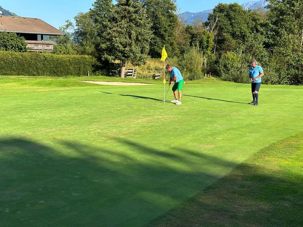 Nach ausgiebigem Frühstück bereiteten sich die Titans bei einem kleinen Frühschoppen auf das Finale vor. Einzig unser Ernie wurde von Rückenschmerzen geplagt, konnte aber nach Einnahme zweier Wunderdiclacs vom Tiger seiner Hausapotheke die Fahrt Richtung Golfplatz aufnehmen. Angekommen am Golfplatz und Checkin wurde kurz der Proshop aufgesucht. Unser Birdiemaker entdeckte 2 Bags zum Schnäppchenpreis, ergriff die Gunst der Stunde und kaufte sie beide. Der Tiger entdeckte ein kleines Fäßchen der Marke "Gösser Zwickl" neben der Kasse. Nach kurzer Nachfrage, ob das wirklich for free ist, labten sich die Titans an diesem edlen Getränk. Einige Titans besuchten noch kurz die Driving Rang, bevor es um 13:00 Uhr zum Tee 1 ging. Streng nach Titansregeln eröffnte der Flight der Hoffnungslosen auf die Titanstrophy in Persona von Ernie, Sir Fifty und Birdiemaker den Finaltag. Die Anwärter für die Trophy starteten regelkonform 10 min später. Heute spielten wir den Platz "Schmitthöhe"; der sich auch als sehr anspruchsvoll aber fair präsentierte. Wiederum strahlte die Sonne mit den Titans um die Wette. Das Highlight im Flight 1 war eine Bodenschänke, die mit gut gekühltem Gösser gefüllt war. Ernie und Birdiemaker hatten ihre wahre Freude daran. Die Spannung im Flight 2 war mit den Händen zu greifen, unser EX-HC-Beste wehrte die Angriffe des Tiger´s auf den ersten 9 Löchern gekonnt ab. Leider war unser Ping Kiesel nicht vom Puttglück verfolgt und sammelte zu wenig Punkte, um noch entscheidend in den Kampf zur Titanstrophy eingreifen zu können. Die zweiten 9 waren ein wahrer Krimi zwischen Tiger und dem EX-HC-Besten. Nach 16 Löchern lag der EX-HC-Beste noch 4 Punkte in Führung. Die Entscheidung musste unser Tiger auf den letzten beiden Löcher herbeibringen.Nach 17 Löcher betrug der Abstand noch 2 Punkte. Leider strich der EX-HC-Beste das letzte Loch und der Tiger puttete gewohnt sicher zum Doppelbogey ein, das im 2 Punkte brachte. Nun begann die große Rechnerei und nach Bestätigung des Scorebeauftragten Sir Fifty erzielte heute unser Tiger 42 Punkte. Birdiemaker konnte sich steigern und belegte mit 38 Punkten den zweiten Platz. Der EX-HC-Beste wurde mit 36 Punkten Dritter. Vierter wurde Sir Fifty mit 35 Punkten und The Ping mit 32 Punkten Fünfter. Leider musste unser rückengeplagter Ernie sich heute mit 26 Punkten die rote Laterne umhängen. Sofort wurde gerechnet und wir können heuer 2 Gewinner der Ausflugstrophy 2023 bekanntgeben.